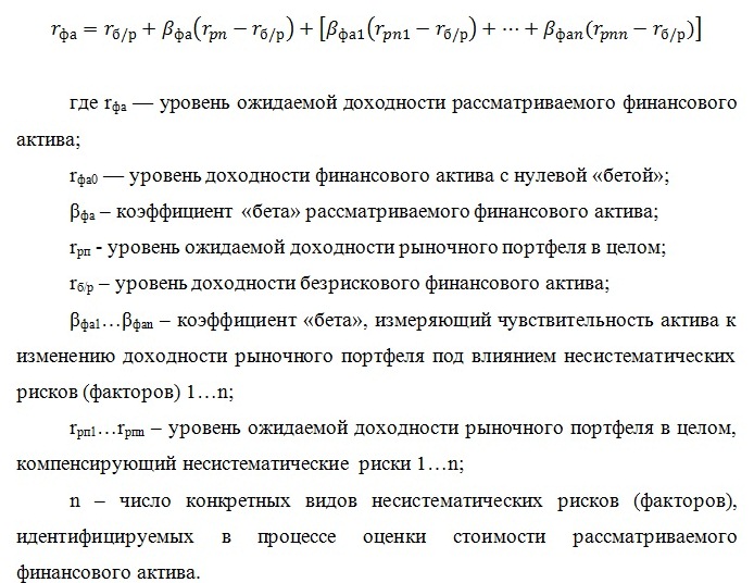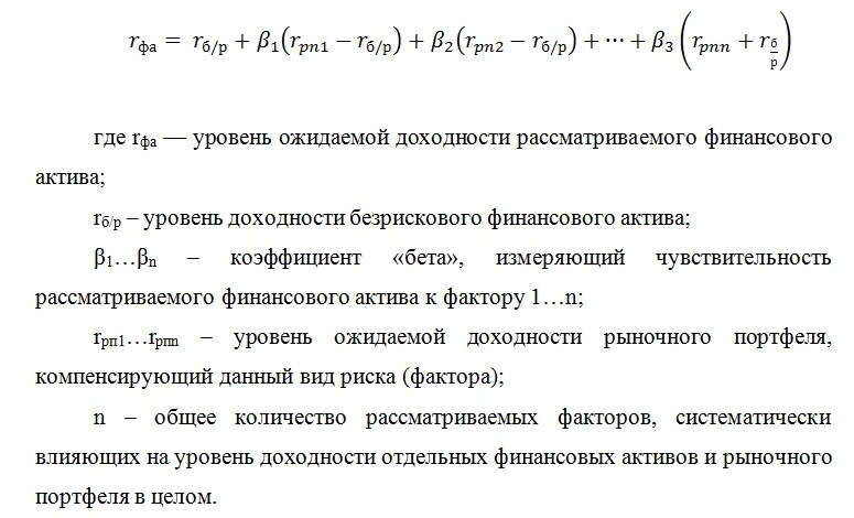 Модель теории арбитражного ценообразования имеет следующий вид:
