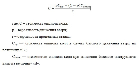 Для определения теоретической стоимости опциона колл при использовании биноминальной модели, используется следующая формула: